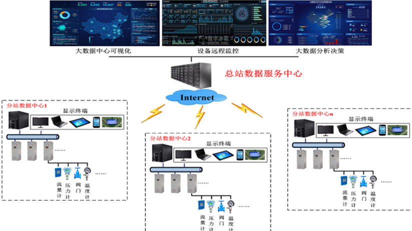 物联网体系下,建立分级管理模式,建立层级大数据中心,待测试泵的水参数、电参数等通过自研的数据采集模块,以有线或无线传输的方式上传至