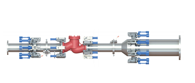 液压快装装置用于管路法兰与泵头法兰的快速拆卸与安装。应用于变径头快速更换与泵头法兰快速安装夹紧,可根据不同的空间选择不同的夹紧装置
