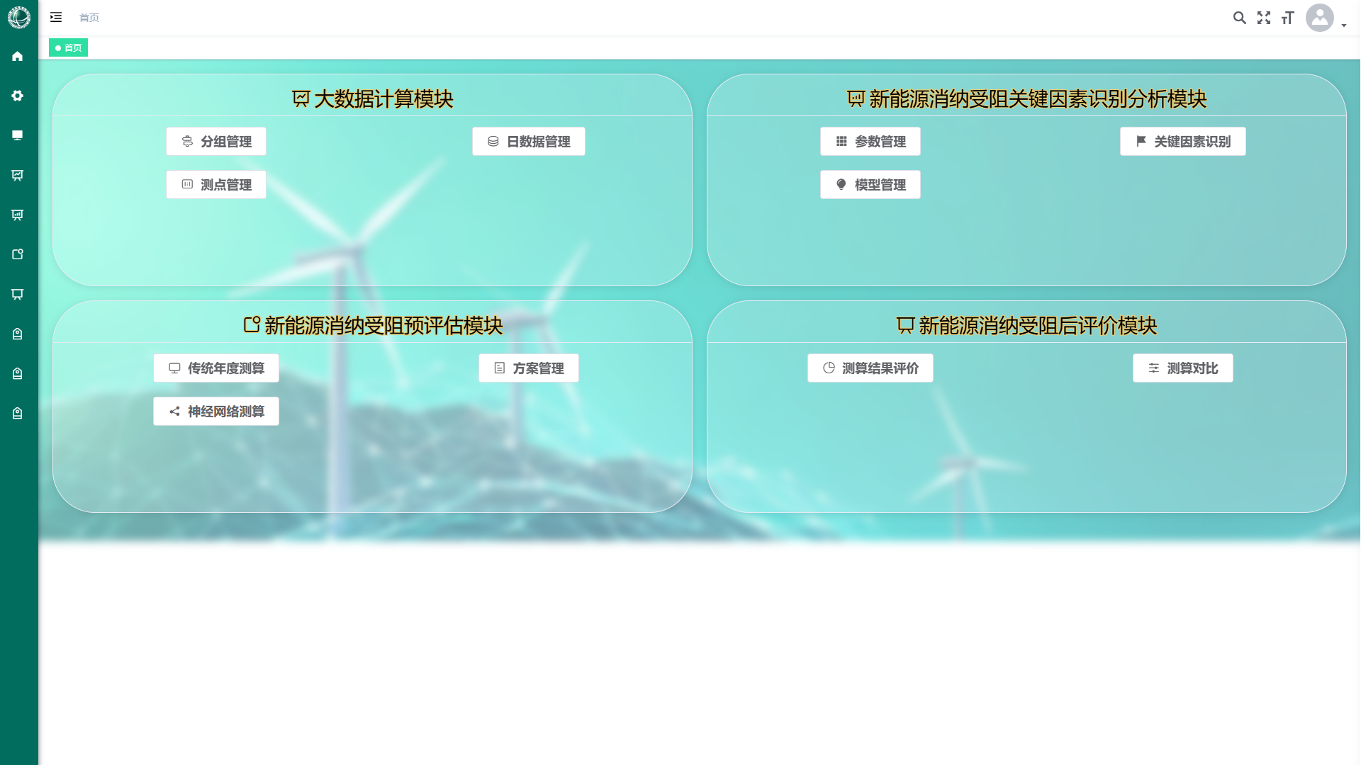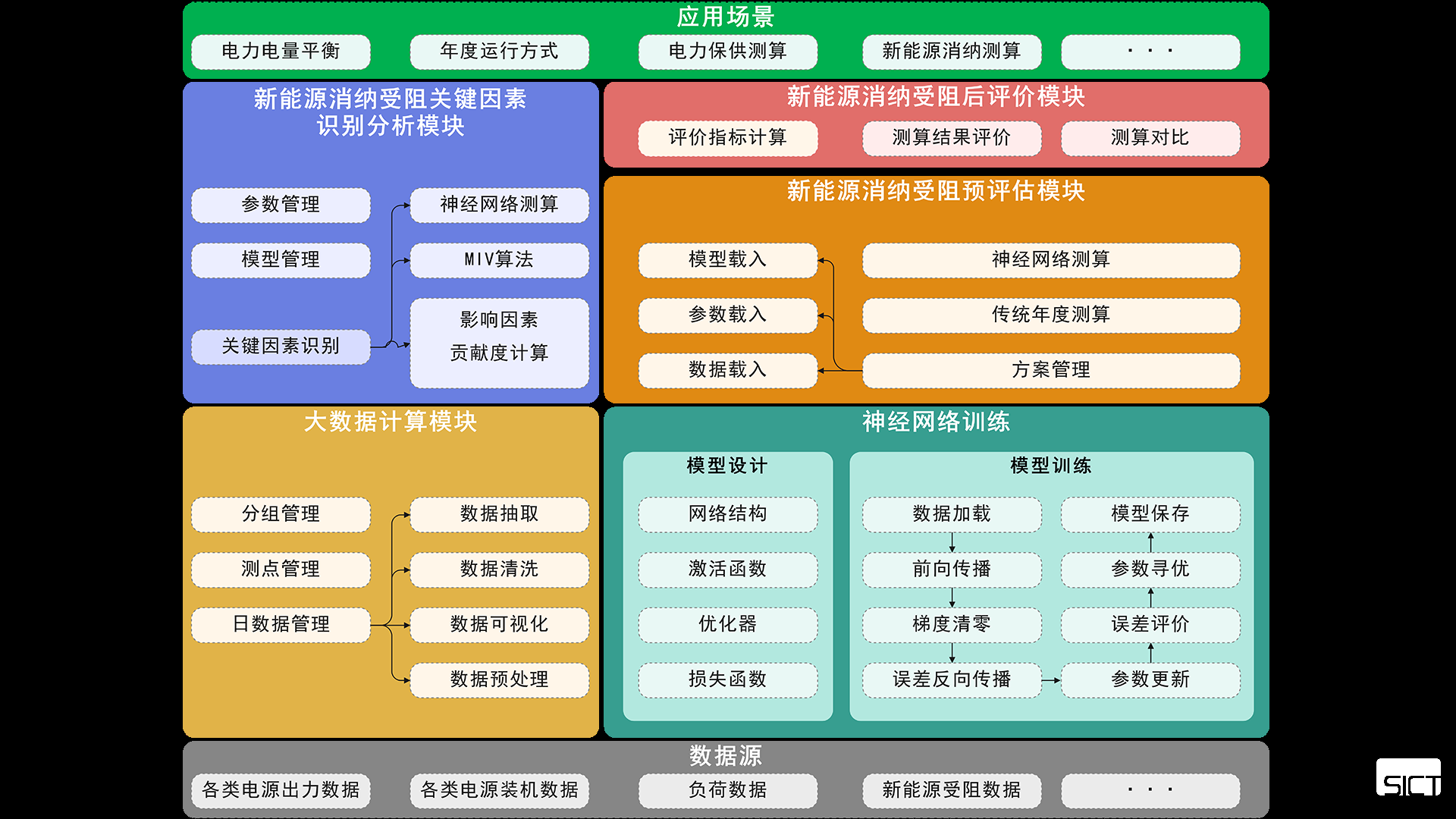 本系统基于现有电力调度业务积累的海量相关业务数据,结合当下热点大数据应用技术,开发制定标准化数据抽取接口与多元异构数据整合订阅方案;深入分析新能源消纳受阻关键因素指标,设计并训练适用于新能源消纳受阻关键因素识别及预测的深度神经网络模型;结合实际电力调度业务特点编制生产模拟任务,多维度实现新能源消纳预评估与后评价的需求。
