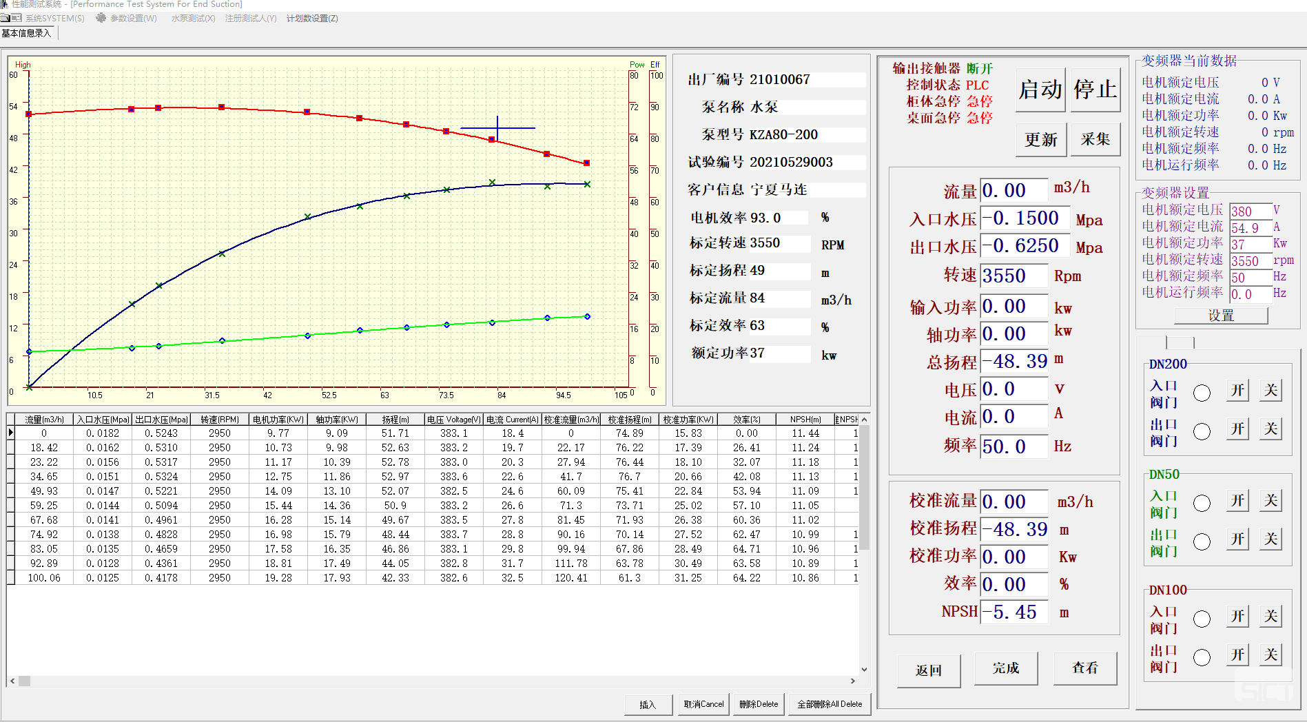 包括开式台和闭式台,符合GB3216一级测试精度要求,具备月测试150台能力,配备7条管路,可满足DN50~DN300全覆盖测试,所有测试数据全部纳入系统,排除人员读数的误差,可以更加准确的识别流量、扬程、轴功率、效率、转速、气蚀、振动、噪声、温升等参数指标。