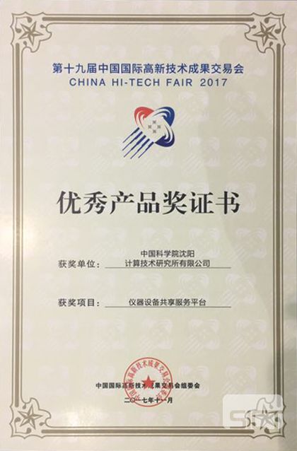 11月21日,第十九届中国国际高新技术成果交易会落下帷幕,沈阳计算参展项目“仪器设备共享服务平台”在46个国家的3049家参展商参展和入库的10020个项目中脱颖而出,经本届高交会组织的专家评审,荣获优秀产品奖。