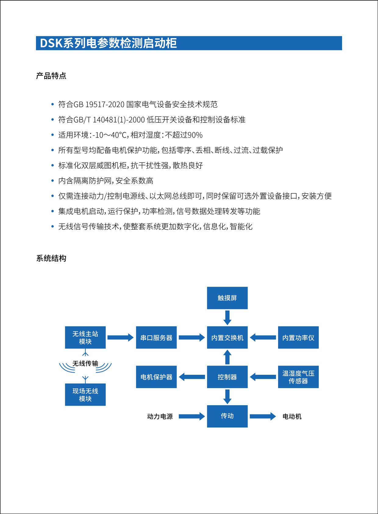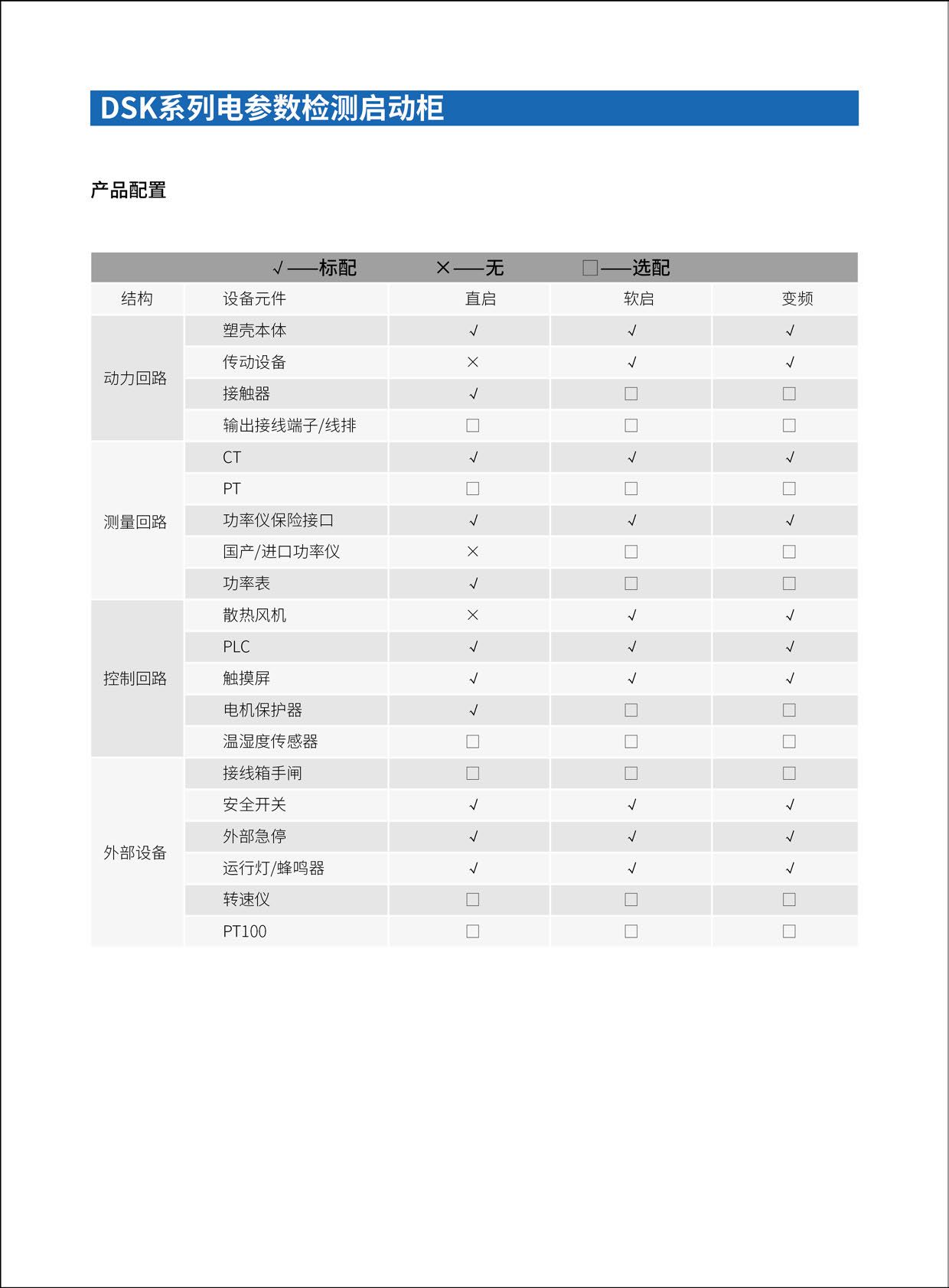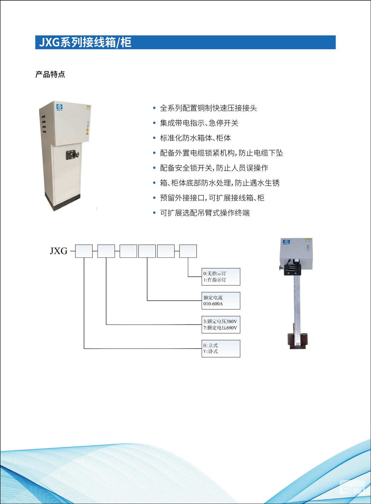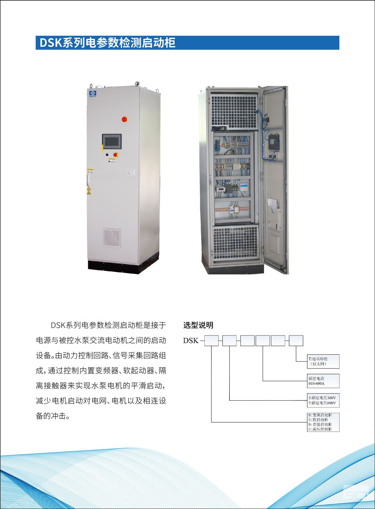水泵的启停控制设备(电参数检测启动柜),用于电压、电流、功率等数据测量,由动力控制回路、信号采集回路组成,通过控制内置变频器、软起动器、隔离接触器来实现水泵电机的平滑启动,减少电机启动对电网、电机以及相连设备的冲击。 接线箱\柜用于对启动柜进行转接,是电机动力供电接线装置。